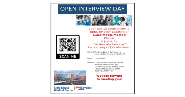 Open Interview Day At Clara Maass Medical Center Wed June 29 Nutley Nj News Tapinto